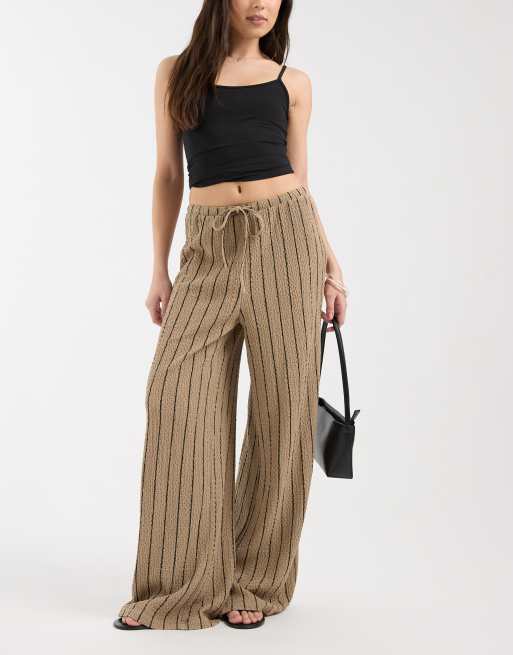 New Look – Strukturierte Hose in gestreiftem Braun mit weitem Bein