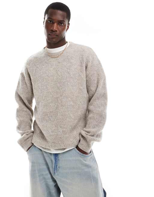 New Look – Strukturierter Pullover in Steinbeige mit Rundhalsausschnitt