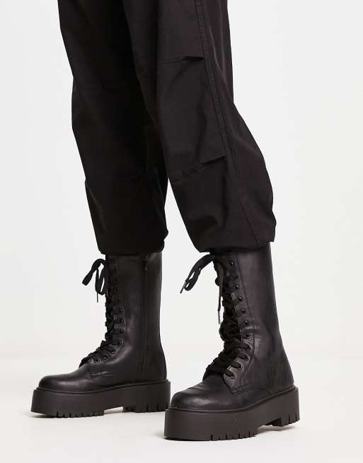 New Look – Wadenhohe Schnürstiefel in Schwarz mit dicker Sohle