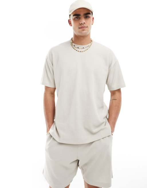 New Look – Waffel-Oversize-T-Shirt in Stein, Kombiteil