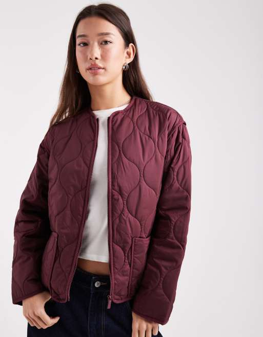 New Look – Wattierte Steppjacke in Burgunderrot