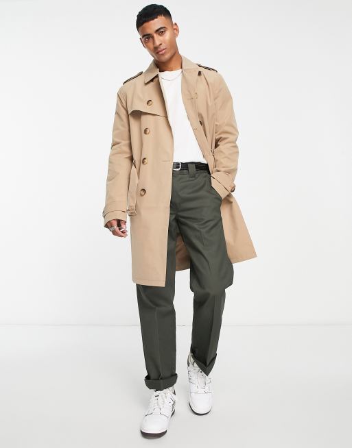 New Look – Zweireihiger, wasserabweisender Trenchcoat in Steinbeige