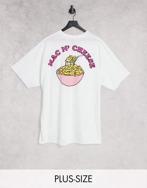 New Love Club Plus – Oversize-T-Shirt in Weiß mit „Mac N' Cheese“-Grafikprint hinten