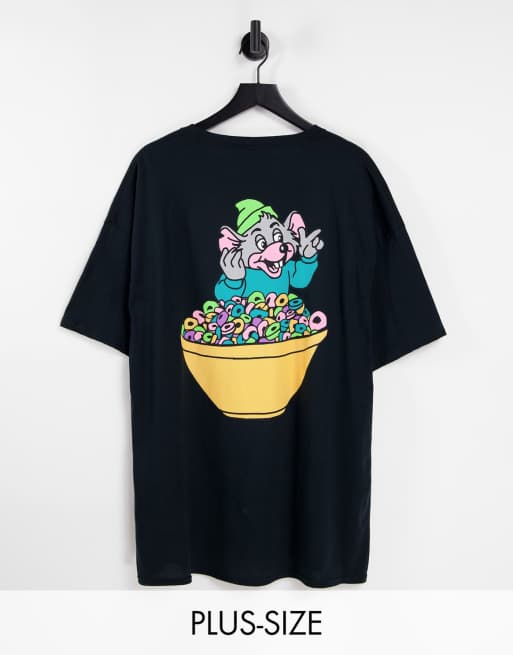 New Love Club Plus – Oversized-T-Shirt mit Glückliche-Maus-in-Müslischalen-Print