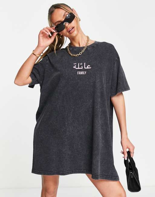 Night Addict – Family – Oversize-T-Shirtkleid in verwaschenem Schwarz