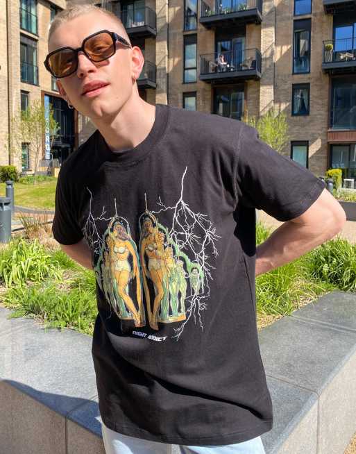 Night Addict – T-Shirt in Schwarz mit symmetrischem Aufdruck auf der Brust