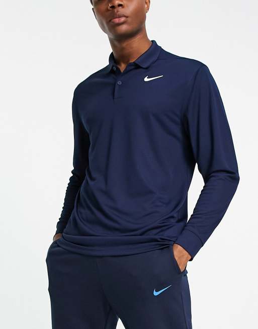 Nike Golf – Victory Dri-FIT – Langärmliges Polohemd in Marineblau
