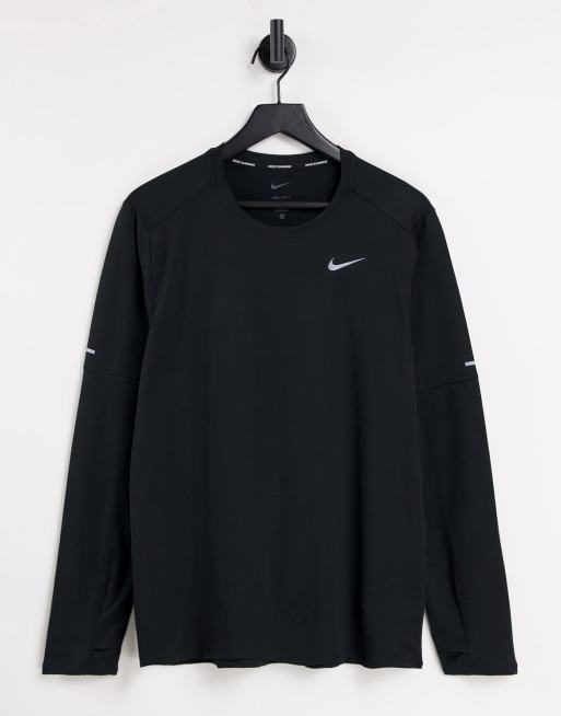 Nike Running – Element Dri-FIT – Langärmliges Oberteil in Schwarz mit Rundhalsausschnitt