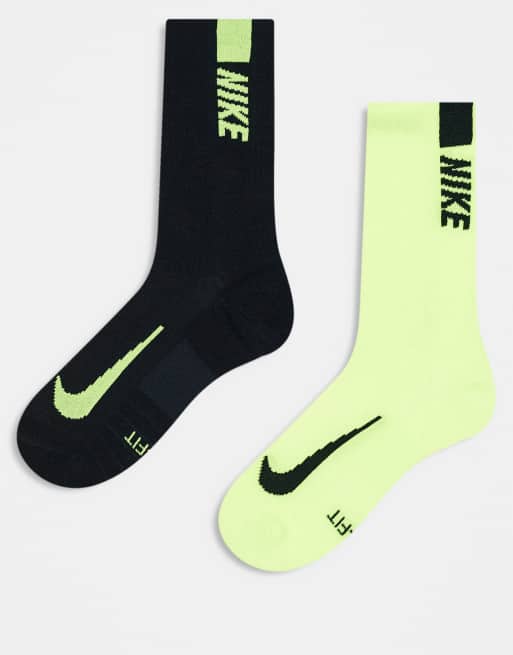 Nike Running – Multiplier – 2er-Pack Crew-Socken in Schwarz und Grün