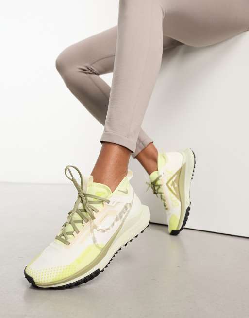 Nike Running – React Gore-Tex Peg Trail 4– Sneaker in Elfenbein und neutralem Olivgrün