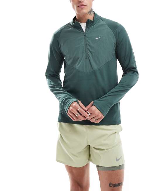 Nike Running – Run Division Element – Sweatshirt in Dunkelgrün mit kurzem Reißverschluss