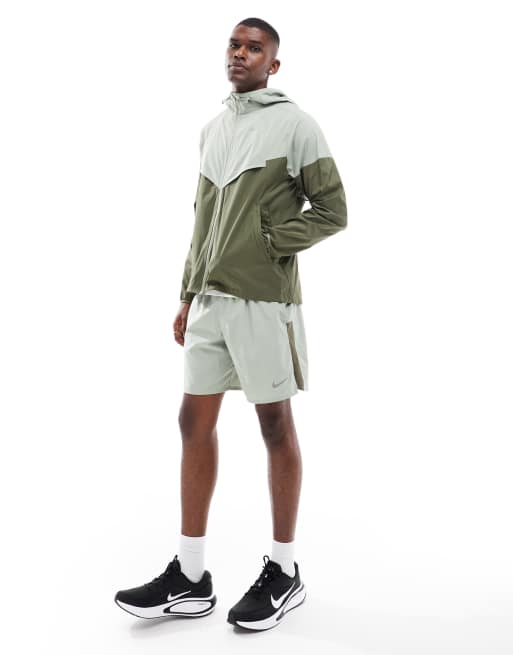 Nike Running – Windrunner – Jacke in Hellgrün und Khaki im Bahnen-Design