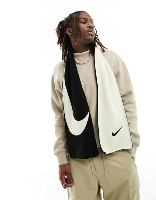 Nike – Wendbarer Schal in Schwarz/Wollweiß mit Swoosh-Logo