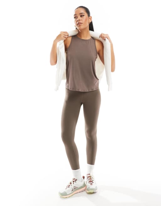Nike – One Training Dri-FIT – 7/8-Leggings in Braun mit hohem Bund