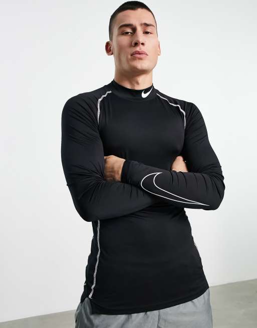Nike – Pro Training Dri-FIT – Langärmliges, schmales Oberteil in Schwarz mit hohem Ausschnitt