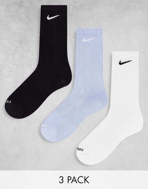 Nike Training – 3er-Pack gepolsterte Socken in Schwarz, Weiß und Blau