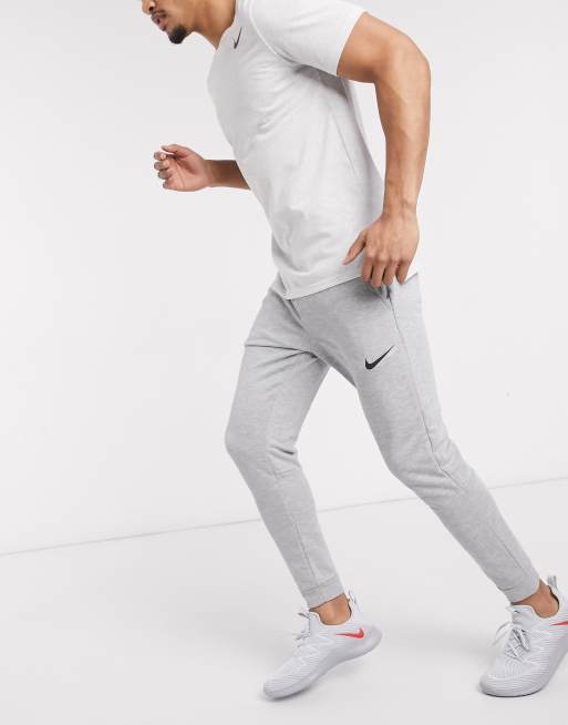 Nike Training – Dri-Fit – Fleece-Jogginghose mit engen Bündchen in Grau