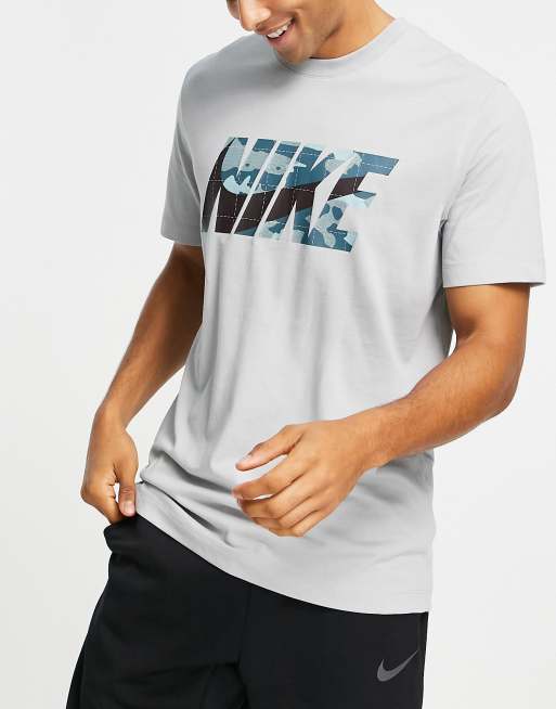 Nike Training – Dri-FIT – T-Shirt in Hellgrau mit Logo im Military-Design