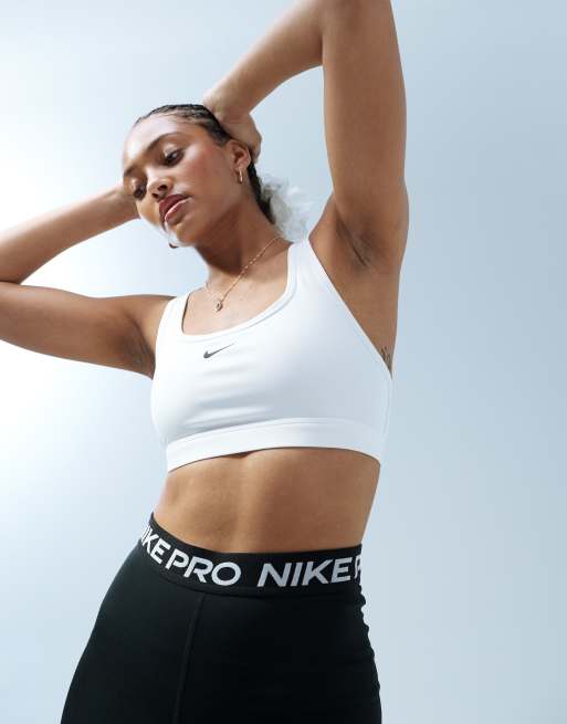 Nike Training – Sport-BH in Weiß mit leichter Stützfunktion und Swoosh-Logo
