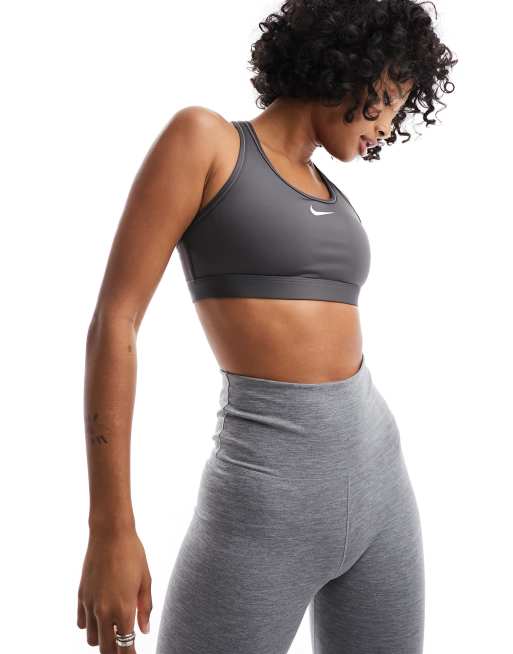 Nike Training – Swoosh Dri-FIT – BH in Aschgrau mit mittlerer Stützfunktion