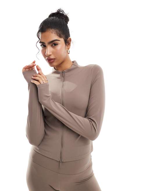 Nike Training – Zenvy Dri-FIT – Weiches, langärmliges Oberteil in Braun mit durchgehendem Reißverschluss