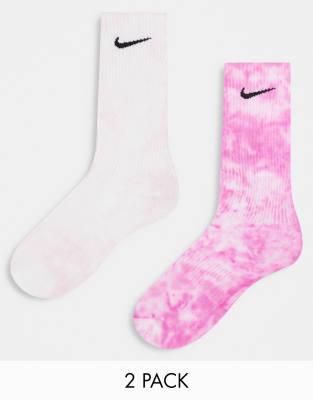 Nike – 2er-Pack Socken mit Batikmusterung in Rosa