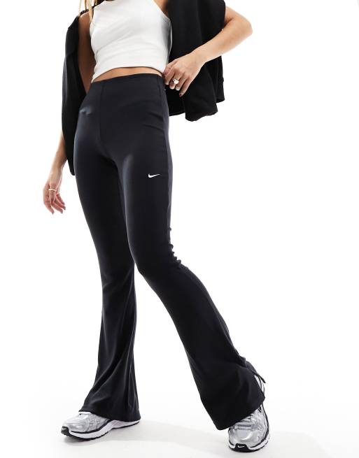Nike – Ausgestellte Leggings in Schwarz mit feiner Rippenstruktur
