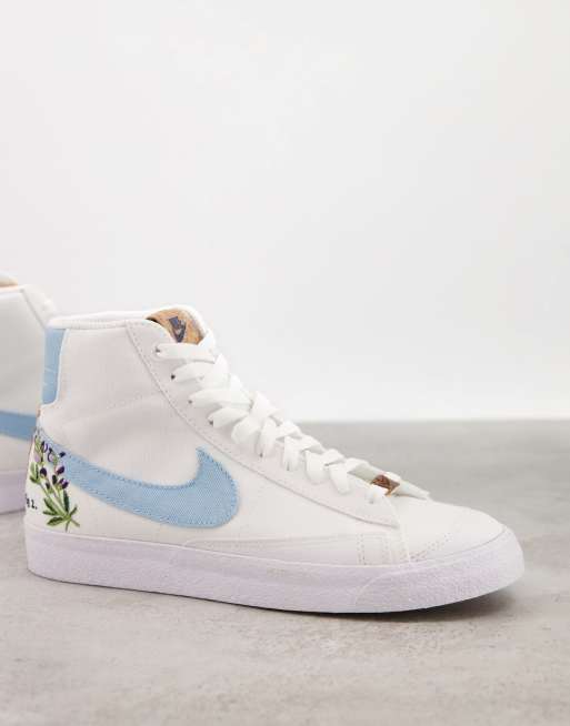 Nike – Blazer Mid 77 – Sneaker in Weiß und Blau mit Blumenstickerei - MBLUE