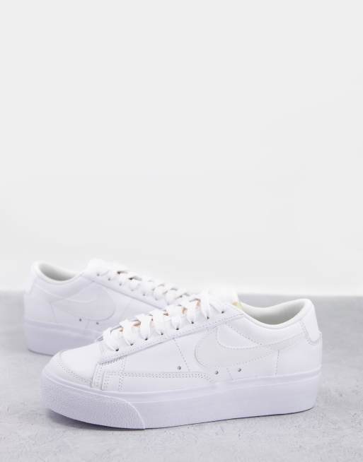 Nike – Blazer – Sneaker in Triple-Weiß mit schmaler Plateausohle