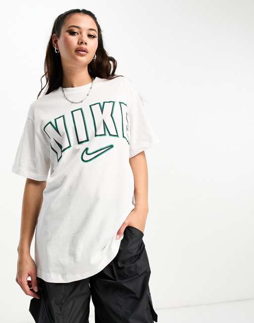Nike – Boyfriend-T-Shirt in Weiß im College-Design
