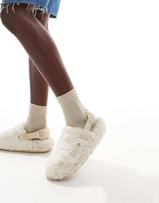 Nike – Calm – Flauschige Mules in Beige