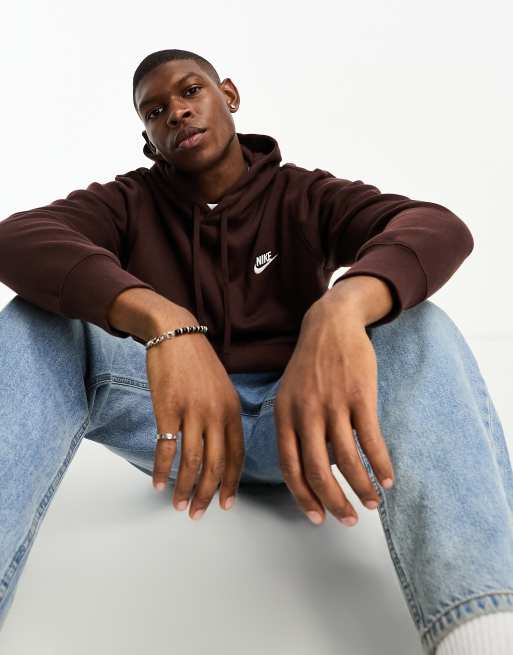 Nike – Club – Kapuzenpullover in Dunkelbraun