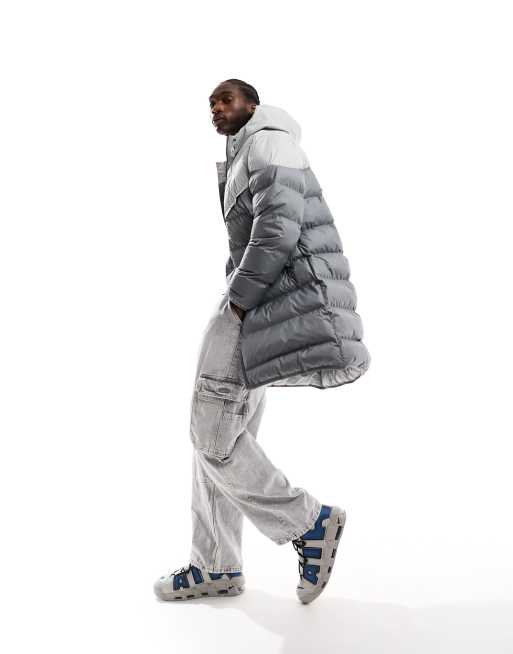 Nike – Club – Langer Steppmantel in Grau