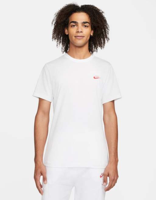 Nike – Club – T-Shirt in Weiß mit rosafarbenem Logo