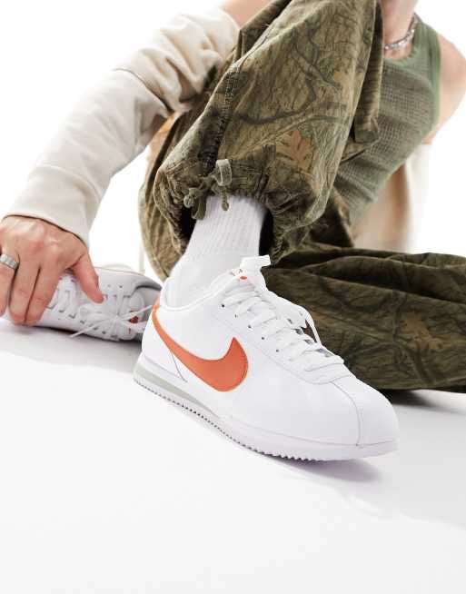 Nike – Cortez – Leder-Sneaker in Weiß und Orange