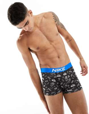 Nike – Dri-FIT Essential – Trunk in Schwarz mit blauem Bund aus Mikrofaser