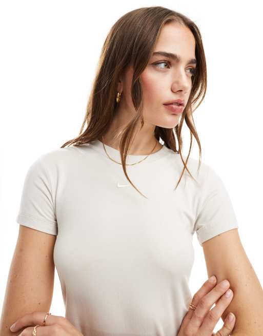 Nike – Essentials – Mittellanges T-Shirt in Beige