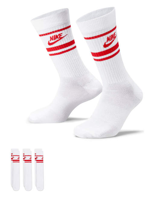 Nike – Everyday Essential – Socken in Weiß/Rot im 3er-Pack