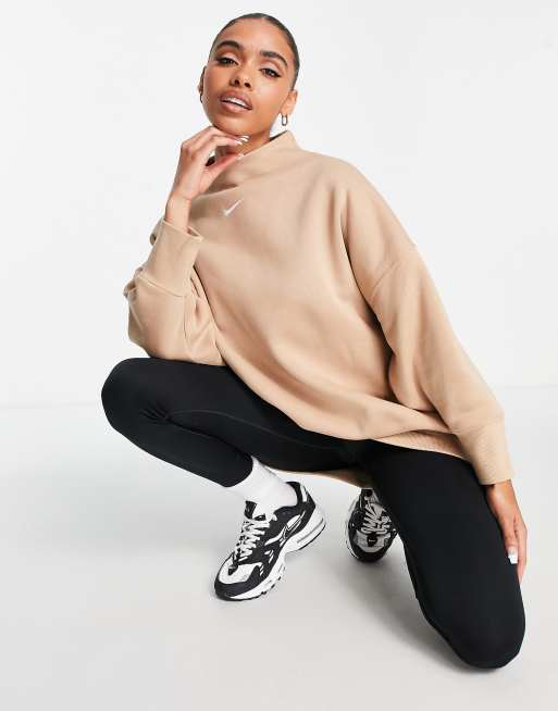 Nike – Extra-Oversize-Sweatshirt in Hanfbraun mit kleinem Swoosh-Logo und Stehkragen