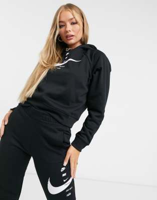 Nike – Kurz geschnittener Kapuzenpullover in Schwarz mit Swoosh-Logo