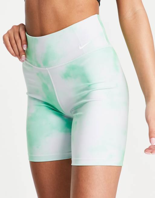 Nike – Legging-Shorts mit halbhohem Bund und grünem Batikmuster, 7 Zoll