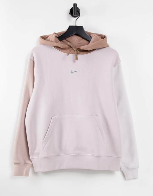 Nike – Metallic Swoosh – Kapuzenpullover im Farbblock-Design in neutraler Farbe