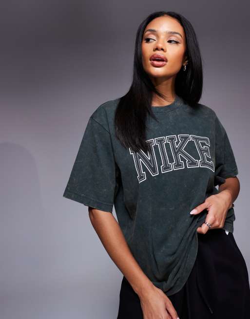 Nike – Oversize-T-Shirt in Grün mit Retro-Logo