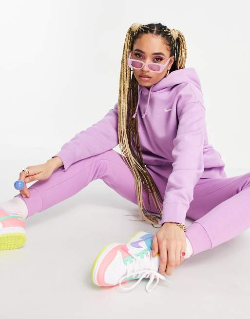 Nike – Oversized-Kapuzenpullover mit kleinem Swoosh-Logo in Violettlila
