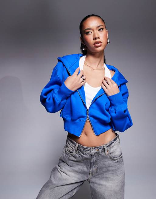Nike – Phoenix Fleece – Cropped-Kapuzenjacke in Blau mit Reißverschluss