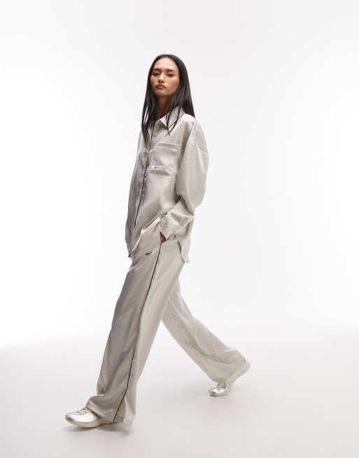 Nike – Satinhose in Wollweiß mit weitem Bein und Bunddetail