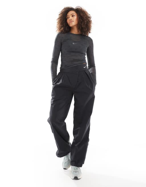 Nike – Swoosh – Asymmetrische Hose in Schwarz