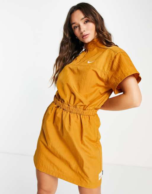 Nike – Swoosh – Kleid in Wüsten-Ockergelb mit Halbreißverschluss und Logo