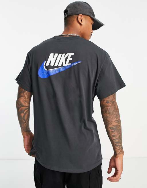 Nike – T-Shirt in Rauchgrau mit mehrfarbigem Logo