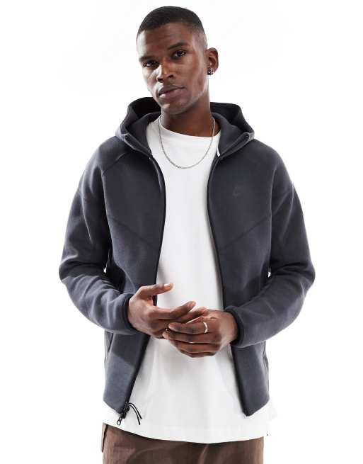 Nike – Tech Fleece – Kapuzenjacke in Dunkelgrau